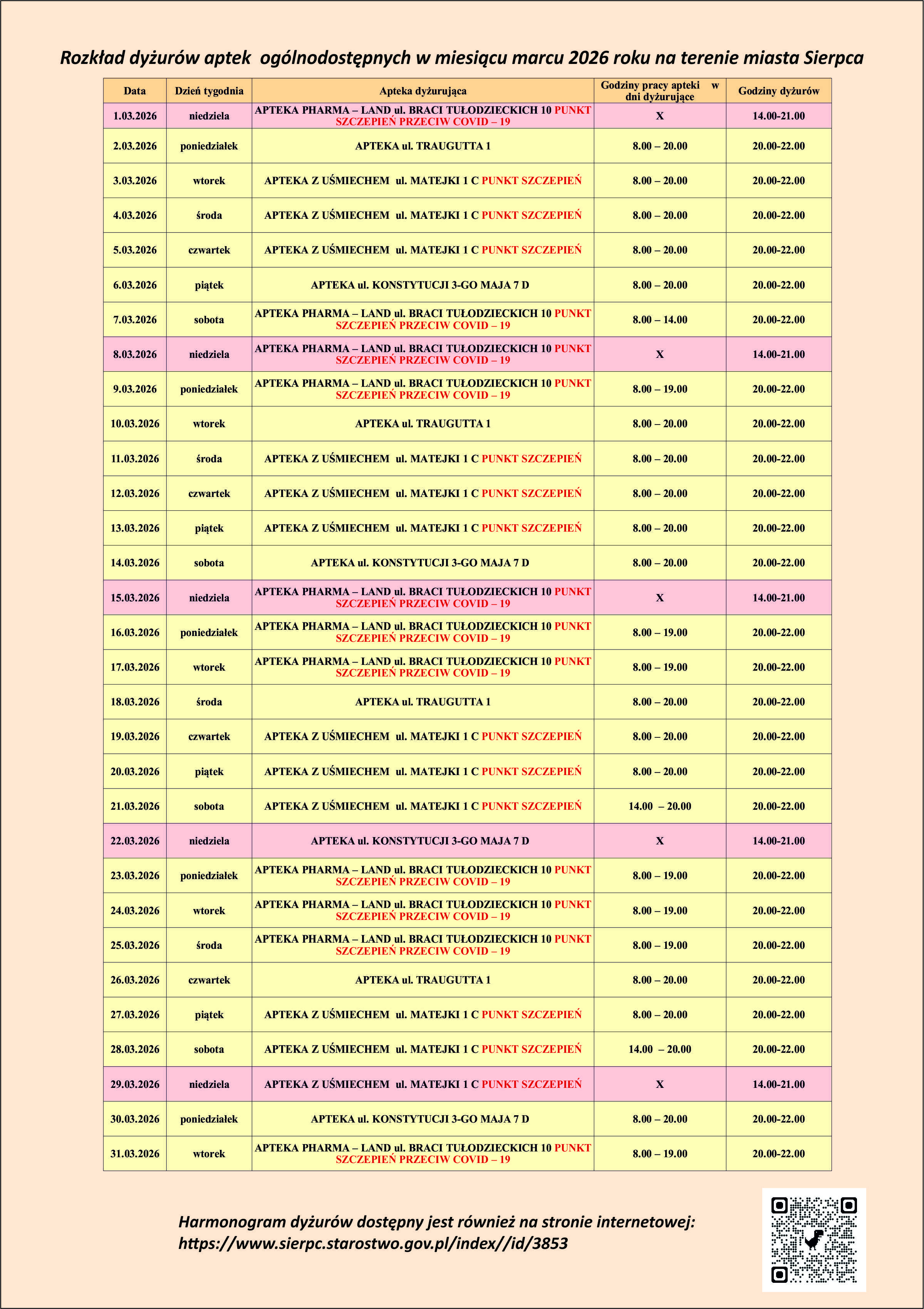 Rozkład dyżurów aptek - wrzesień 2024r.