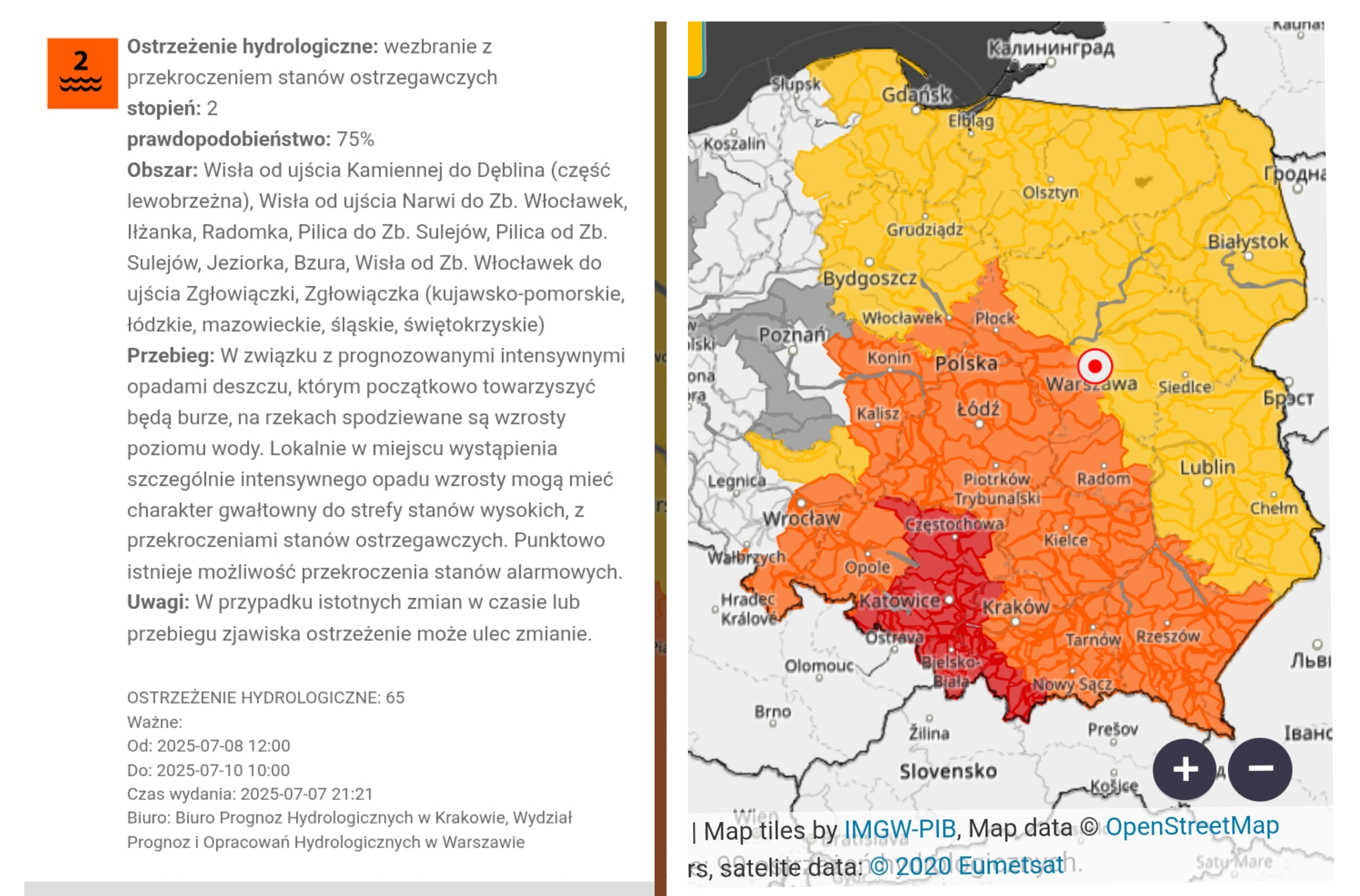 Ostrzeżenie hydrologiczne II stopnia - 8-10.07.2025