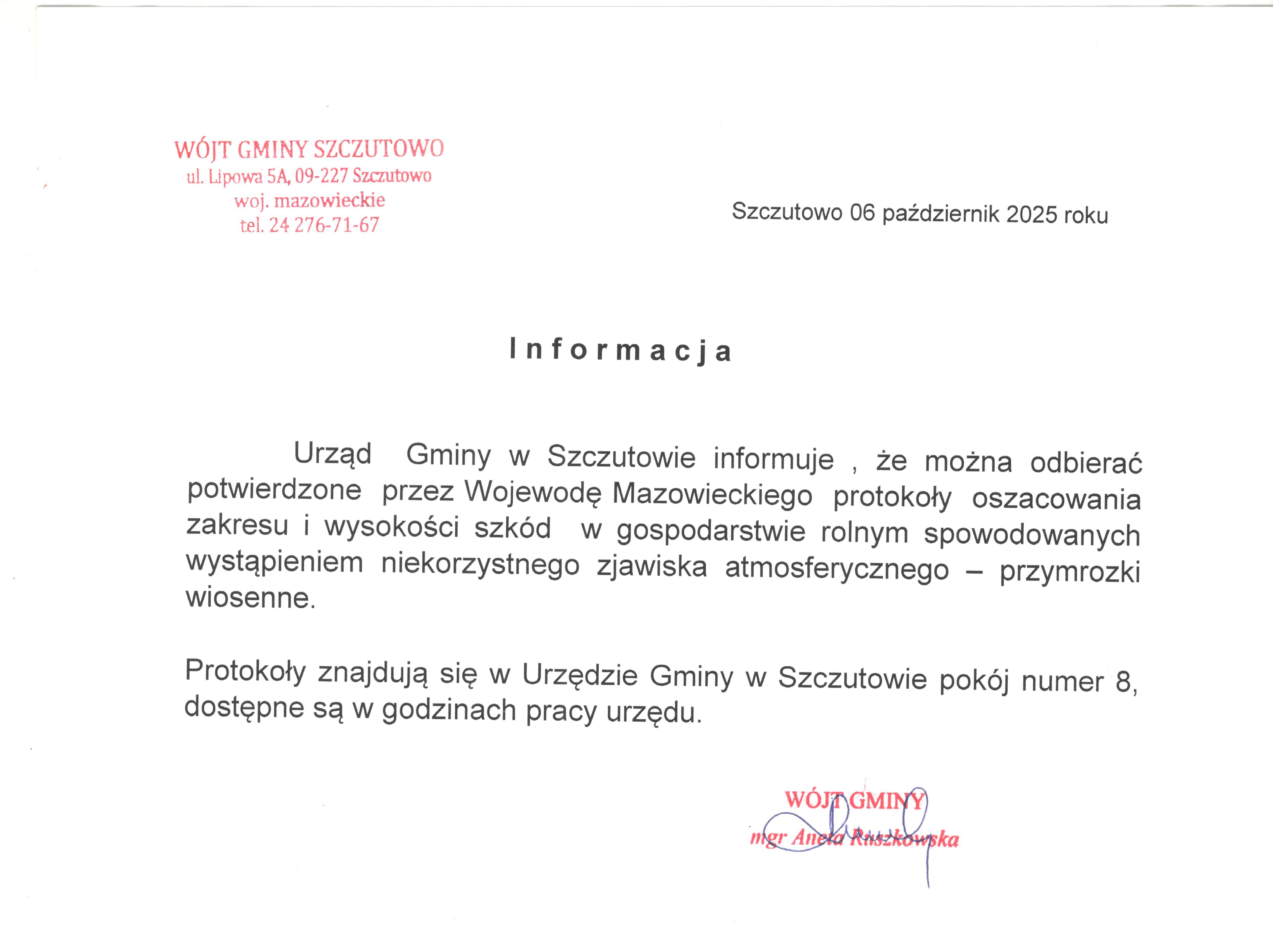 Podmiot udostępniający informacje: Biuletyn Informacji Publicznej Urzędu Gminy Szczutowo Data stworzenia : 2025-05-26 15:25 Autor : Aleksandra Wiśniewska Data publikacji : 2025-05-26 15:25 Osoba udostępniająca na stronie : Aleksandra Wiśniewska Data ostatniej modyfikacji : 2025-05-27 10:27 Osoba modyfikująca : Aleksandra Wiśniewska